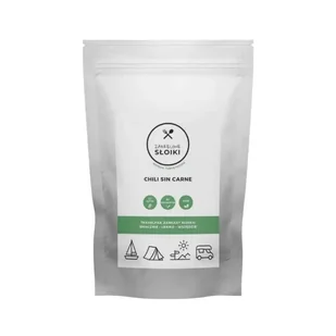 Chili sin carne (z hiszp. „chili bez mięsa”) to wegańska wersja klasycznego, pikantnego gulaszu meksykańskiego i teksańskiego (Tex-Mex). Jest to pożywne danie jednogarnkowe, w którym mięso mielone zastępuje się bogatymi w białko roślinnymi batatami i fasolą. Papryka, seler oraz kukurydza dodają potrawie smaku a przyprawy ostrego aromatu. Chili sin carne od Zakręconych Słoików to wersja turystyczna którą możesz zabrać ze sobą na biwak. Danie jest gotowe do spożycia od razu po podgrzaniu.