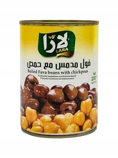 Gotowana fasola fava z ciecierzycą Lara – 400 g Skład: fasola fava woda ciecierzyca sól regulator kwasowości - kwas cytrynowy E330 stabilizator koloru E385 w...