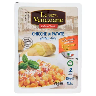 Odkryj smak wyjątkowych kluski ziemniaczane bezglutenowe Chicche di Patate od Le Veneziane, które przyniosą włoski akcent do Twojej kuchni! Stworzone z myślą o osobach poszukujących alternatywy dla tradycyjnego makaronu, te delikatne kluski są nie tylko bezglutenowe, ale również bogate w smak i lekkie na podniebieniu. Idealne do szybkich i smakowitych posiłków dla całej rodziny. Le Veneziane oferuje Ci produkt najwyższej jakości, który łączy w sobie tradycyjne włoskie rzemiosło i nowoczesne potrzeby dietetyczne. Kluski te są łatwe w przygotowaniu i pasują do różnych potraw: od klasycznych sosów pomidorowych po wyszukane kombinacje z owocami morza.