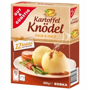 Kartoffel Knodel 309 g Masa ziemniaczana do przygotowania 12 sztuk knedli. Sposób przygotowania: Zawartość torebki rozprowadzić w 3/4 litra zimnej wody. Dopr...