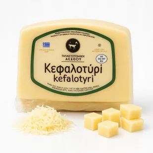 Ser Kefalotyri z Lesbos – 900 g CHIDIRA LESVOS GR Tradycja smaku zamknięta w kawałku twardego sera – prosto z wyspy Lesvos Tradycyjny grecki ser o twardej st...
