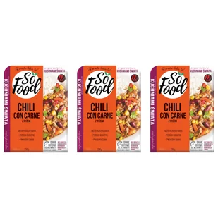 So Food Chili con carne z ryżem zestaw 3 x 330 g. żywność. Chili con carne z ryżem zestaw 3 x 330 gDanie to kwitesencja meksykańskiego smaku dzięki połączeniu mięsa wieprzowego, czeronej fasoli oraz aromatycznych przypraw, pikantnie doprawionych dodatkiem chili Jest to posiłek, który przygotujesz. . .