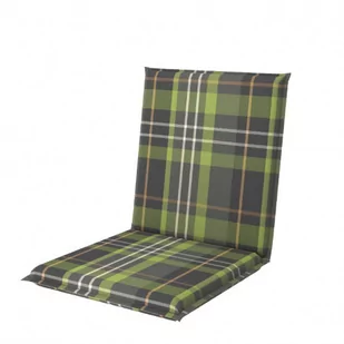 Poduszka na meble ogrodowe zniskim op arciem z serii LIVING w wersji z obszytym brzegiem, przeszyta 2x ściegiem pierścieniowym w oparciu. Zapinana jest na przesuwaną klamrę. Dzięki klamrze można dopasować rozmiar do wielkości i rodzaju krzesła, klamra jest stała i nie wysuwa się. Poduszka siedziska jest mocowana za pomocą dwóch sznurowadeł w zagięciu poduszki. Pokrowca nie można zdjąć.