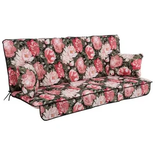 Przemyślany system mocowania – kieszeń w górnej poduszce i troczki w dolnej – umożliwia szybkie i stabilne przymocowanie kompletu do konstrukcji huśtawki. Dekoracyjny wolant i delikatne pikowanie dodają elegancji, a kwiatowy motyw piwonii w pastelowej palecie kolorów idealnie współgra z ogrodową zielenią, wprowadzając romantyczną atmosferę do strefy relaksu.