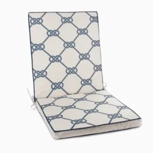 Zapewnij sobie komfort i styl na balkonie lub tarasie dzięki wygodnemu siedzisku na krzesło wykonanemu z wodoodpornej tkaniny. Miękka, elastyczna gąbka umieszczona zarówno na oparciu, jak i siedzeniu gwarantuje wygodę podczas odpoczynku na świeżym powietrzu. Tkanina zdobiona marynistycznym wzorem węzłów doda uroku Twojej przestrzeni, tworząc przytulną atmosferę. Dzięki praktycznym troczkom siedzisko można łatwo przymocować do krzesła, zapobiegając jego przesuwaniu. To doskonałe rozwiązanie dla każdego, kto ceni wygodę, funkcjonalność i piękny design!Gramatura materiału: