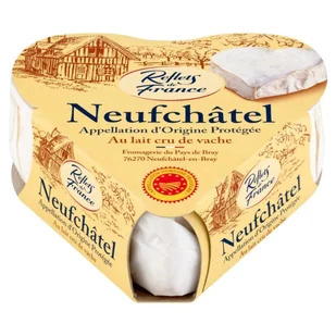 Neufchâtel (Chroniona nazwa pochodzenia). Ser podpuszczkowy, dojrzewający, z porostem białej pleśni.