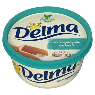 Delma bez konserwantów Margaryna półtłusta (39% tłuszczu) ze szczyptą soli.