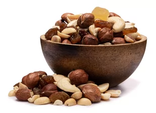 zdjęcie- Mieszanki orzechów i bakalii produkujemy w sposób ciągły w małych partiach, aby surowiec trafiał do Państwa w jak najświeższej formie. Dbamy o jakość i do mieszanek dodajemy tylko orzechy i owoce, które również pakujemy osobno jako ekskluzywny produkt. Mieszankę orzechową można samodzielnie wymieszać, dodać do porannego musli lub owsianki lub użyć do pieczenia i gotowania. Rodzynki? Suszone owoce winorośli zawierają liczne minerały i pierwiastki śladowe, takie jak potas, wapń, magnez, fosfor, cynk, żelazo i bor. Warto również wspomnieć o ich wysokiej zawartości antyoksydantów oraz obecności inuliny, która pomaga utrzymać prawidłowy stan mikroflory jelitowej.