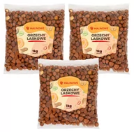 Orzechy laskowe 200g PRODUKT NATURALNY, WYSOKIEJ JAKOŚCI Orzechy laskowe charakteryzują się wysokimi właściwościami odżywczymi, a w połączeniu z fosforem, który zawierają, są szczególnie przydatne dla osób pracujących umysłowo oraz w wieku rozwojowym. Surowe owoce są cennym źródłem witaminy E (50 g. orzechów to 127% dziennego zapotrzebowania) oraz B1, B2, PP i C minerałów takich jak żelazo, cynk, potas i miedź. Orzechy laskowe idealnie nadają się do wytworzenia mleczka orzechowego czy domowej czekolady. Surowe owoce można stosować do sałatek, deserów, dań, sosów, do wyrobu nalewki orzechowej czy też jako dodatek do kremów orzechowych. Wartości odżywcze produktu w 100 g Wartość energetyczna 2750 kJ / 665 kcal Tłuszcz 63 g w tym kwasy tłuszczowe nasycone 4,5 g Węglowodany 6 g w tym cukry 4 g Błonnik 8,9 g Białko 14,4 g Sól 0 g Zawartość: