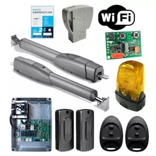 Możliwość otwierania bramy z każdego miejsca na świeciePodgląd statusu bramy (otwarta / zamknięta) na smartfonie z systemem Android lub IOS przy użyciu darmowej aplikacji CAME AutomationZdalne otwieranie dla kuriera, listonosza, sąsiada, karetki, służb sprzątającychUpoważnianie innych użytkowników do użytkowania bramy przez autoryzacjęHarmonogramy, czyli otwarcie / zamknięcie bramy o ustawionej godzinieZarządzanie użytkownikami i harmonogramami przez przeglądarkę (CAME Connect)Zmiana parametrów o ustawionej godzinie (np. włączenie autozamykania w godzinach nocnych)W SKŁAD ZESTAWU WCHODZĄ: 2 x Siłownik CAME ATS30DGS 24VElektroniczne ograniczniki krańcowe (wbudowane)Centrala sterująca ZL65Karta częstotliwości AF43SPModuł WiFi / Bluetooth CAME KEYKomplet fotokomórek DIR10 (nadajnik + odbiornik)2 x Pilot 2-kanałowy SPACE SP2 (433,92MHz), kod zmiennyLampa sygnalizacyjna KIARO KLED24 24VKlucz uniwersalny do wysprzęglenia napęduAkcesoria montażoweInstrukcja instalacji, użytkowania i konserwacjiKarta gwarancyjna (24 m-ce)DANE TECHNICZNE SIŁOWNIKA: Stopień zabezpieczenia IP44Zasilanie 230 V 50/60 HzZasilanie silnika 24 V D CPobór prądu silnika 8 AMoc maksymalna silnika 80 WCykl pracy - intensywnaSiła ciągu 400 ÷ 3000 NCzas otwarcia (do 90°) 15 - 30 sTemperatura pracy -20°C min. +55°C max. CAME to jeden z wiodących producentów automatyki do bram, szlabanów parkingowych, systemów kontroli dostępu, słupków automatycznych, automatyki domowej i wielu innych produktów. To jedna z najbardziej doświadczonych firm na świecie – działa na rynku już ponad 45 lat.