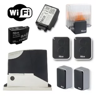 Zestaw Nice ROBUS 400 to gotowy do samodzielnego montażu komplet automatyki w wersji HI-SPEED z akcesoriami przeznaczony do bram przesuwnych o ciężarze do 400 kg. W SKŁAD ZESTAWU WCHODZĄ: Samohamowny siłownik RB400 24V z wbudowaną centralą sterującą RBA3R10 BLUEBUSDwukierunkowy radioodbiornik 4-kanałowy OXIBD (złącze radiowe typu SM)Moduł NICE BIDI WIFI2 x Pilot 2-kanałowy Era One ON2E z kodem zmiennym (433,92MHz)Fotokomórka EPMB (nadajnik + odbiornik) BLUEBUS, zasięg do 30 m2 x Metalowy kluczyk do odblokowania napędu (w razie awarii prądu)Koło zębateMechaniczne wyłączniki krańcowe otwarcia i zamknięciaPodstawa montażowa + 2 kotwy do mocowania w betonieInstrukcja instalacji, użytkowania i konserwacjiKarta gwarancyjna (24 m-ce)Siłowniki Nice ROBUS to jedne z najpopularniejszych automatów do bram przesuwnych na rynku, na co składa się szereg ich zalet: System BLUEBUS: Umożliwia podłączenie urządzeń peryferyjnych za pomocą jedynie 2-żyłowego przewodu, a diody LED sygnalizują włączone funkcje.