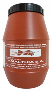 Greckie czarne oliwki Kalamata gigant w solance – 1,5 kg Skład: oliwki Kalamata gigant woda sól ocet winny Po otwarciu produkt należy przechowywać w lodówce....