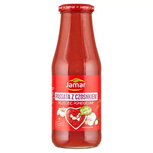 Jamar Passata z czosnkiem 700 g Przecier pomidorowy z czosnkiem. Produkt pasteryzowany. Czy wiesz, że? Nazwa Passata pochodzi z Włoch i oznacza sos z przetar...
