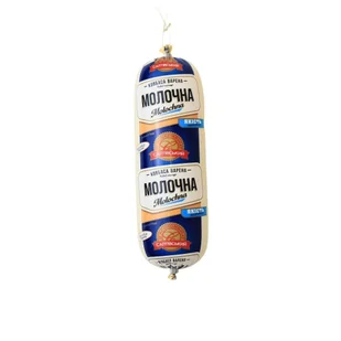 Kiełbasa gotowana "MOŁOCZNA UKR BMK" 500g Masa: 500 g. Składniki: mięso 61% (w tym mięso z kurczaka 41%, mięso wieprzowe 16%. mięso wołowe 4%); woda; skrobia...