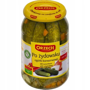Ogórki konserwowe po żydowsku 900g ORZECH Ogórki konserwowe po żydowsku Pojemność: 900ml Producent: Orzech Wartość energetyczna: 112 kJ / 26 kcal Tłuszcz: <0...