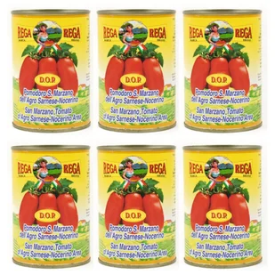 Pomidory San Marzano Rega 6x400g - Włoskie całe bez skóry, idealne do sosów i dań śródziemnomorskich