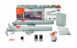 NICE HOME ARIA400 - zestaw napędów do automatyzacji bram dwuskrzydłowych o szerokości jednego skrzydła do 4,5 m i ciężarze do 200 kg. Światło bramy do 9,0 metra – 2 skrzydła o długości po 4,5m każde. Zestaw przeznaczony do samodzielnego montażu.