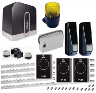 Napęd FAAC C720 Cyclo jest kompletnym , gotowym do samodzielnego montażu zestawem przeznaczonym do bram przesuwnych o maksymalnym ciężarze do 400 kg. Napęd posiada bezpieczny silnik 24V przeznaczony do pracy intensywnej, ciągłej. Dodatkowo posiada amperometryczny system wykrywania przeszkód. W skład zestawu wchodzą: Napęd Faac C720 z wbudowaną centrala E720 Moduł radiowy XF 868 MHz - Nowość !! Pilot XT4 ( 4 kanały ) 868 MHz SLH LR DUŻY ZASIĘG BRAK ZAKŁÓCEŃ - 1 sztuka Fotokomórki XP 20 D Z REGULACJĄ KĄTA 5x LISTWA ZĘBATA 5mb z tulejami (jeśli chcesz wymienić na nylonową napisz w uwagach po zakupie, wymienimy gratis) Lampa Sygnalizacyjna Podstawa pod siłownik magnetyczne wyłączniki krańcowe kluczyki do awaryjnego otwierania bramy w przypadku zaniku prądu uchwyty montażowe Napęd do bramy przesuwnej FAAC C720 CYCLO nowoczesność i niezawodność w jednym urządzeniu Napęd FAAC C720 CYCLO to innowacyjne rozwiązanie zaprojektowane specjalnie do automatyzacji bram przesuwnych o maksymalnej wadze do 400 kg.