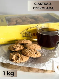 Ciastka z czekoladą 1 kg Ciastka z czekoladą 1 kg – klasyka, którą każdy uwielbia Nasze ciastka z czekoladą to doskonałe połączenie kruchego ciasta i kawałków czekolady. Idealne do kawy, herbaty, pracy lub jako słodki upominek. Każde ciasteczko to balans między słodyczą i delikatnością, który sprawia, że trudno poprzestać na jednym. Dlaczego warto wybrać nasze ciastka z czekoladą: ✔️ pyszne, kruche i aromatyczne ✔️ prawdziwa czekolada w każdym kęsie ✔️ idealne do biura, szkoły i na spotkania ✔️ duże, ekonomiczne opakowanie 1 kg Życzymy smacznego! Ciastka z czekoladą – 1 kg.