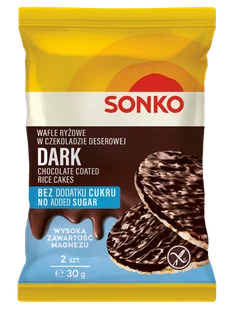 Wafle ryżowe w czekoladzie deserowej bez dodatku cukru to świetna alternatywna dla diabetyków i osób z celiakią! Z Sonko bez wyrzutów sumienia możesz oddać się słodkiej pokusie! Stanowią źródło magnezu, zmniejszającego uczucie zmęczenia i wspomagającego funkcje psychologiczne.
