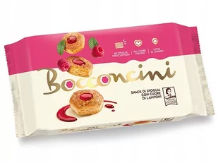 Matilde Vicenzi Bocconcini - Włoskie ciasteczka z kremem malinowym 100g Takie małe, takie smaczne: oto nowe Matilde Vicenzi Bocconcini, przekąski z pachnącego ciasta francuskiego ze słodkim nadzieniem, które skradną Twoje serce! Kruche i delikatne ciasto francuskie! Podziel się nimi ze znajomymi i spraw, by Twoja przerwa była pysznie smaczna! Opakowanie: 90g Z kremem malinowym Skład: mąka pszenna, nadzienie malinowe 16% (syrop glukozowo-fruktozowy, przecier malinowy 25%, stabilizator: glicerol, cukier, substancja żelująca: pektyna, zakwaszacz: kwas cytrynowy, zagęszczony sok marchwiowy, aromat), cukier, MASŁO, margaryna roślinna (olej palmowy) , olej słonecznikowy, woda), sól, aromaty. Może zawierać inne ORZECHY, SOJĘ, GORCZYCĘ.