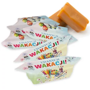 Może zawierać zboża zawierające gluten (pszenny, żytni), nasiona sezamu, soję, dwutlenek siarki, orzeszki arachidowe i orzechy nadruk: krówki zawinięte są w papierek, który ozdobiony jest kolorowym motywem i życzeniami udanych wakacji krówki będą wspaniałym upominkiem dla uczniów i przedszkolaków na zakończenie roku szkolnego Wielkość: krówka: 3x1,5x1,5cm krówka w papierku: 6,5x1,5x1,5cm waga krówki: ok. 12,5g