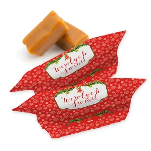 Krówki świąteczne w papierkach z napisem Wesołych Świąt to wspaniały pomysł, by oczarować najbliższych lub wręczyć drobne upominki firmowe. Krówki będą wspaniałym dodatkiem dla każdego, to idealna propozycja jako drobiazg do koszy prezentowych, ale można je wręczyć również samodzielnie. Krówki pięknie sprawdzą się jako słodki upominek bożonarodzeniowy. Opis: skład: 1kg (ok. 65szt) krówek o śmietankowym smaku owiniętych w papierki ozdobione świąteczną grafiką i napisem Wesołych Świąt materiał: produkt zawiera mleko (łącznie z laktozą), może zawierać zboża zawierające gluten (pszenny, żytni), nasiona sezamu, soję, dwutlenek siarki, orzeszki arachidowe i orzechy nadruk: