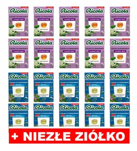 Ricola 20szt (10x Czarny Bez + 10x Mentol) Kupujesz: 10szt smak Czarny Bez 10szt smak Mentol Dodatkowo zgarniasz NIEZŁE ZIÓŁKO w podzięce od Essa-Shop. (30 s...