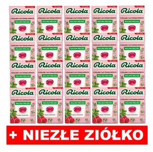 Ricola Malina Melisa 27,5g (op. zbiorcze 20szt) Kupujesz: Malina 27,5g opakowanie zbiorcze 20szt. Dodatkowo otrzymujesz NIEZŁE ZIÓŁKO w podzięce od Essa-Shop...