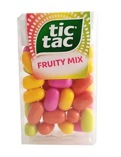 TIC TAC FRUIT MIX DRAŻETKI OWOCOWE 18 g Tic Tac Fruit Mix to owocowe drażetki o smaku wiśni, marakui, limonki i truskawki z miętą. Opakowanie 18 g zawiera losową ilość poszczególnych smaków. Rodzaj: drażetki Smak: wiśniowy, marakui, limonki i truskawkowy Marka: Tic Tac Kraj pochodzenia: