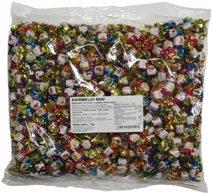 TROJANKA CUKIERKI KARMELKI MINI MIX 1KG KARTON ZBIORCZY ZAWIERA - 6 SZTUK SKŁADNIKI: cukier, syrop glukozowy, regulator kwasowości: kwas cytrynowy E330, wodorowęglan sodu, aromaty, barwniki: E100, E120, E141 (ii), E150d, E160a, E163. Przechowywać w suchym i chłodnym miejscu