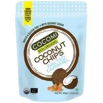 Chipsy kokosowe prażone wykonane są w z orzecha kokosowego z dodatkiem karmelu i soli morskiej. Stanowią idealną przekąskę. Można również je stosować do ozdabiania deserów, tortów. Pakowano w atmosferze ochronnej.