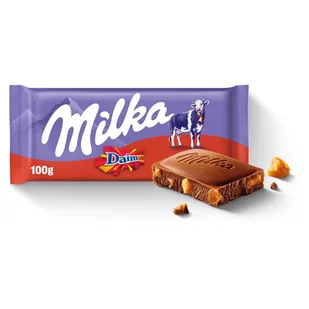Milka Czekolada mleczna z mleka alpejskiego z chrupiącymi karmelizowanymi kawałkami migdałów (20 %).