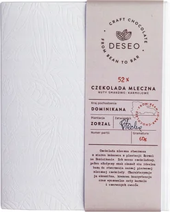 Czekolada mleczna Dominikana 52% Czekolada mleczna stworzona z ziaren kakaowca z plantacji Zorzal na Dominikanie. Ich mocno czekoladowy, pełen słodyczy smak okazał się idealną bazą do stworzenia naszej pierwszej mlecznej czekolady. Charakteryzuje ją aksamitna, kremowa konsystencja oraz wyczuwalne nuty karmelu i czerwonych owoców. Aby wydobyć pełnię smaku naszej czekolady, zamknij oczy i powąchaj ją. Ułam kawałek i umieść go na języku, ale nie rozgryzaj.