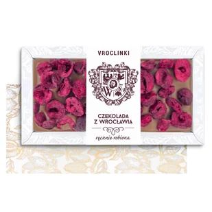 Ręcznie robiona z wykorzystaniem mlecznej czekolady z dodatkiem naturalnych produktów, starannie dobranych, aby sprostać wymaganiom nawet najbardziej wymagających smakoszy czekoladowych przysmaków. Składniki: mleczna czekolada (cukier, tłuszcz kakaowy, MLEKO w proszku, miazga kakaowa (33%), MLEKO w proszku odtłuszczone, emulgator: lecytyna SOJOWA, naturalny aromat wanilii), wiśnia liofilizowana (2,5%). Wartość odżywcza produktu w 100g: wartość energetyczna 2339kj/561kcal, tłuszcz 36g (w tym kwasy tłuszczowe nasycone 21g), węglowodany 49g (w tym cukry 48g), błonnik 1,5g, białko 9,5g, sól 0,24g. Produkt może zawierać: