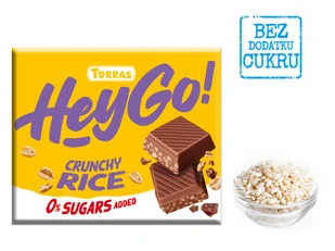 Czekolada mleczna crunchy z chrupiącym ryżem BEZ CUKRU 60g Torras Hey GO Czekolada mleczna crunchy z chrupiącym ryżem bez dodatku cukru. Zawiera substancję słodzącą. Produkt bezglutenowy Składniki: substancja słodząca: maltitol, masło kakaowe, pełne mleko w proszku (15%), chrupiący ryż (10%), miazga kakaowa, emulgator (lecytyny), aromaty.
