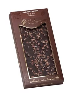 Zakosztuj czekolady od mistrza polskich cukierników! Intensywna i wyrazista gorzka czekolada o wysokiej zawartości afrykańskiego kakao i z dodatkiem prażonych ziaren kakaowca.