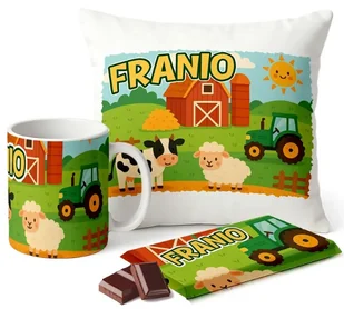 ✨Zestaw Kubek Poduszka Czekolada z Imieniem Prezent Farma Traktor Zwierzęta ⭐️⭐️⭐️⭐️⭐️ Wyjątkowy, personalizowany zestaw prezentowy – KUBEK + PODUSZKA + CZEKOLADA Wyjątkowy, personalizowany zestaw prezentowy z imieniem – kubek, poduszka oraz czekolada w tym samym uroczym motywie wiejskiej farmy, traktorów i zwierzątek ⭐ Dlaczego nasz zestaw jest wyjątkowy ⭐