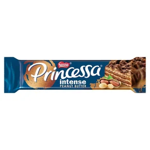NestléPrincessaWafel z kremem arachidowym, warstwą czekolady deserowej (12,9%), kawałkami orzechów arachidowych i płatkami pszennymi (2%), oblany czekoladą mleczną (32,8%). Princessa Intense to nowa linia wafli, która da Ci jeszcze więcej przyjemności, dzięki wielozmysłowym doznaniom. Chrupiąca posypka z przepysznych dodatków, jeszcze bardziej kremowe nadzienie, oryginalne smaki - to właśnie wyróżnia nową Princessę! . Princessa Intense Peanut Butter to chrupiący wafelek przełożony kremem arachidowym, o zniewalającym orzechowym zapachu. W super chrupiącej posypce znajdują się kawałeczki orzeszków ziemnych oraz pszenne płatki, a całość oblana jest grubą warstwą wyśmienitej mlecznej czekolady.