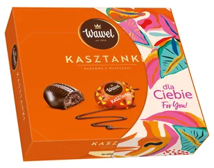 Bombonierka Czekoladki Kasztanki Wawel 330g - Oferta okazjonalna Czekoladki nadziewane Kasztanki z Wawelu zachwycają już od pierwszego spotkania. To aromatyczna, lekko wytrawna czekolada deserowa, która pokrywa przepyszne, kultowe już nadzienie o charakterystycznym kakaowo-wafelkowym smaku. Doskonała kompozycja, którą pokochały podniebienia milionów Polaków. ❥ Kultowe nadzienie o charakterystycznym kakaowo-wafelkowym smaku ❥ Bez substancji konserwujących, barwników i sztucznych aromatów ❥ W wyjątkowym opakowaniu okazjonalnym "Dla Ciebie" ❥ Limitowana Oferta Okazjonalna