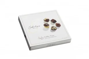 Elegancki zestaw czekoladek idealnych do kawy. W pudełku znajdują się różnorodne praliny o aksamitnych nadzieniach, dopasowanych do aromatów kawowych.