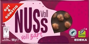 Czekolada Ciemna Nuss Voll Cały Orzech Waga 100 g Chrupiące, całe orzechy laskowe drobno cierpką ciemną czekoladą. Ciemna czekolada zawierająca co najmniej 6...
