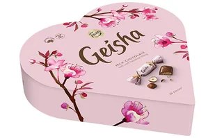 Serce Geisha 190 g Pralinki z mlecznej czekolady Geisha otulone są nadzieniem z nugatu orzechowego. Luksusowa, gruba polewa z mlecznej czekolady doskonale ko...