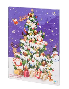 Kalendarz adwentowy Czekolada Fairtrade Zaskocz kogoś bliskiego podczas okresu świątecznego Dzięki temu kalendarzowi adwentowemu sprawisz swoim przyjaciołom lub rodzinie najsłodszą niespodziankę. Będą myśleć o Tobie każdego dnia delektując się kolejną pyszną czekoladową niespodzianką. Produkt ma certyfikat Fairtrade. Biorący udział w tym programie rolnicy uprawiający kakao otrzymują uczciwe wynagrodzenie oraz premię. Dzięki systemowi Fairtrade życie rolników i ich rodzin pod wieloma względami ulega znacznej poprawie.