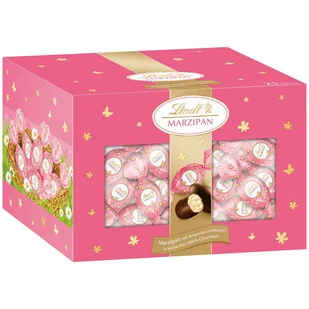 LINDT Marzipan Amaretto 425g jajeczka marcepanowe LINDT Marzipan Amaretto 425g jajeczka marcepanowe 25 sztuk jajeczek z czekolady mleczno - deserowej wypełnionych najlepszym marcepanowym nadzieniem z amaretto. Udekoruj swój kolorowy wielkanocny koszyczek tymi słodkimi marcepanowymi jajkami Lindt. Wgryź się w chrupiącą skorupkę z bogatej, słodko-gorzkiej mlecznej czekolady i poczuj, jak łączy się ona z wilgotnym marcepanem, tworząc wyjątkową ucztę. Delikatna nuta amaretto dodaje bogatego, pełnego smaku. Zawinięte w różową folię ze złotymi motylami, te pisanki idealnie nadają się do wypełnienia wielkanocnych koszyczków.