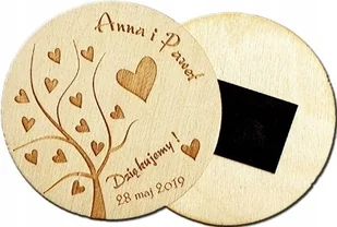 Drewniany Magnes Podziękowanie dla Gości 1 szt !!! !!! !!! ŚLUB CHRZEST KOMUNIA Mamy do zaoferowania eleganckie podziękowania dla gości na wesele, chrzest w formie drewnianych magnesów na lodówkę. Wspaniała pamiątka tej szczególnej chwili - Waszego Ślubu, Chrztu, Pierwszej Komunii Świętej! Wybierz z kilkudziesięciu wzorów. Najważniejsze informacje: Drewno brzozowe (sklejka 3mm), Wymiar 6x6cm Przyklejony magnes W cenę wliczony jest indywidualny grawer. Tak powinno wyglądać zamówienie: