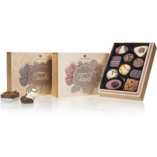 Skrzyneczki z pralinkami dla Babci i Dziadka – komplet elegancji i wyjątkowego smaku Podaruj swoim Dziadkom prezent, który łączy luksusowy smak belgijskiej c...