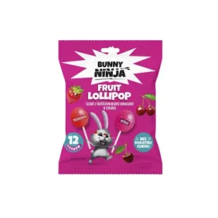 Bunny Ninja Lolli Pop Lizaki kulki o smakach truskawki i wiśni 12 x 10 g. Słodycze lub przekąska. Bunny Ninja Fruit Lollipop Truskawka i Wiśnia to owocowe lizaki w klasycznej formie, ale o nowoczesnym podejściu do smaku i składu Powstają bez dodatku cukru Każdy lizak zawiera liofilizowane owoce. . .
