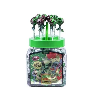 kompleksy miedziowe chlorofilu E141 (ii), Barwnik E150D Może zawierać mleko, soję, orzechy oraz gluten. Nie zawiera THC. Przechowywać w ciemnym i suchym miejscu Ogłoszenie dotyczy 1 szt lizaka.