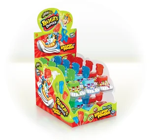 Lizak w kształcie stopy maczany w proszku. Pojemnik w kształcie buta. SMAKI: Truskawka, Zielone Jabłko, Niebieska Malina. W opakowaniu24szt.